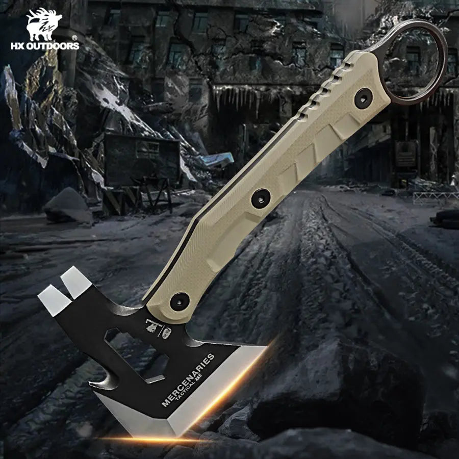 This mini GUARDIANS combines a hex wrench, nail puller, and rope cutter in a compact design, perfect for emergency repairs, chopping, and survival tasks, making it an ideal outdoor tool.