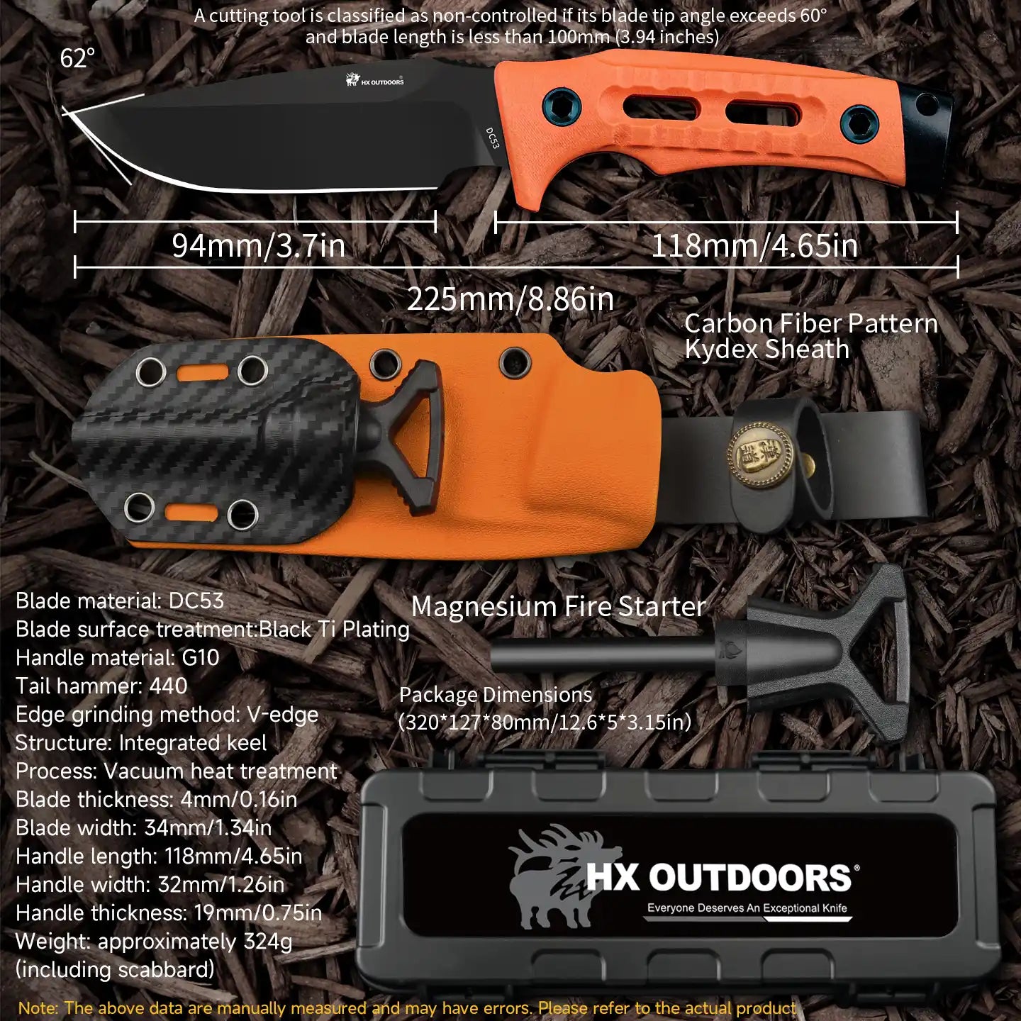 ROCK APEX Fixed Blade | 3.7" DC53 Blade | Orange G10 Handle | HX OUTDOORS TD-18CE