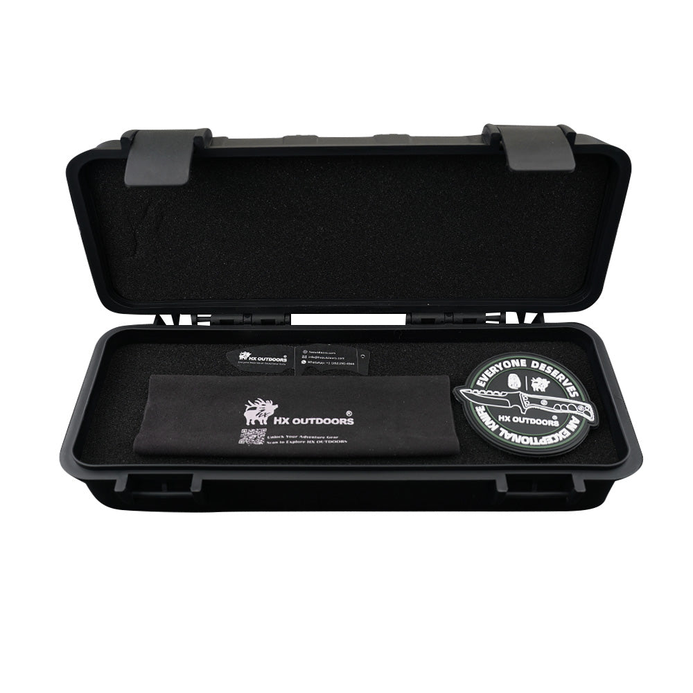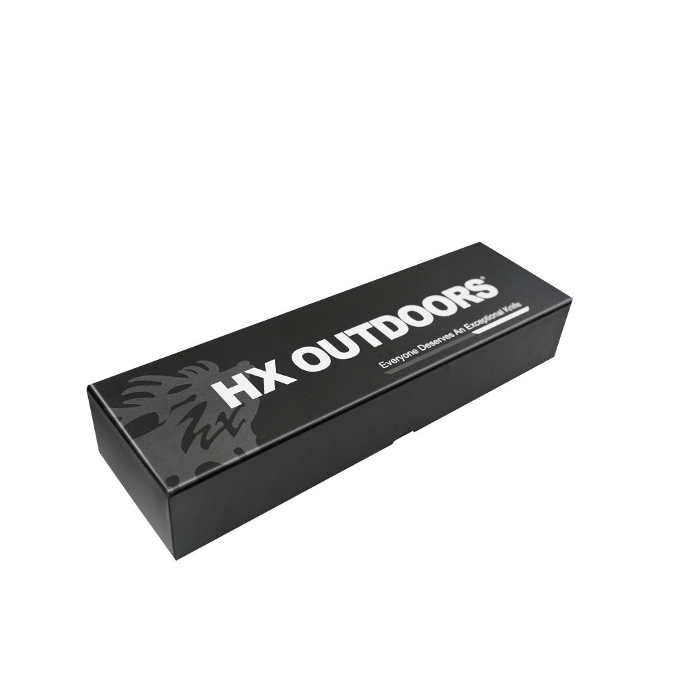 La hoja fija HX OUTDOORS JUNGLORD cuenta con un robusto núcleo de acero 90Cr18MoV de 5,59 pulgadas con un acabado compuesto forjado de 79 capas para una resistencia excepcional y resistencia a la corrosión. Su mango ergonómico de nogal mide 130 mm, ofreciendo un control equilibrado y comodidad. Con una longitud total de 272 mm y un robusto grosor de hoja de 5 mm, este cuchillo está diseñado para ofrecer precisión y durabilidad. Incluye una funda de cuero sarga de primera calidad para un almacenamiento y transporte seguros. Con un peso aproximado de 452 g con el estuche, el JUNGLORD es ideal para las tareas más exigentes al aire libre.