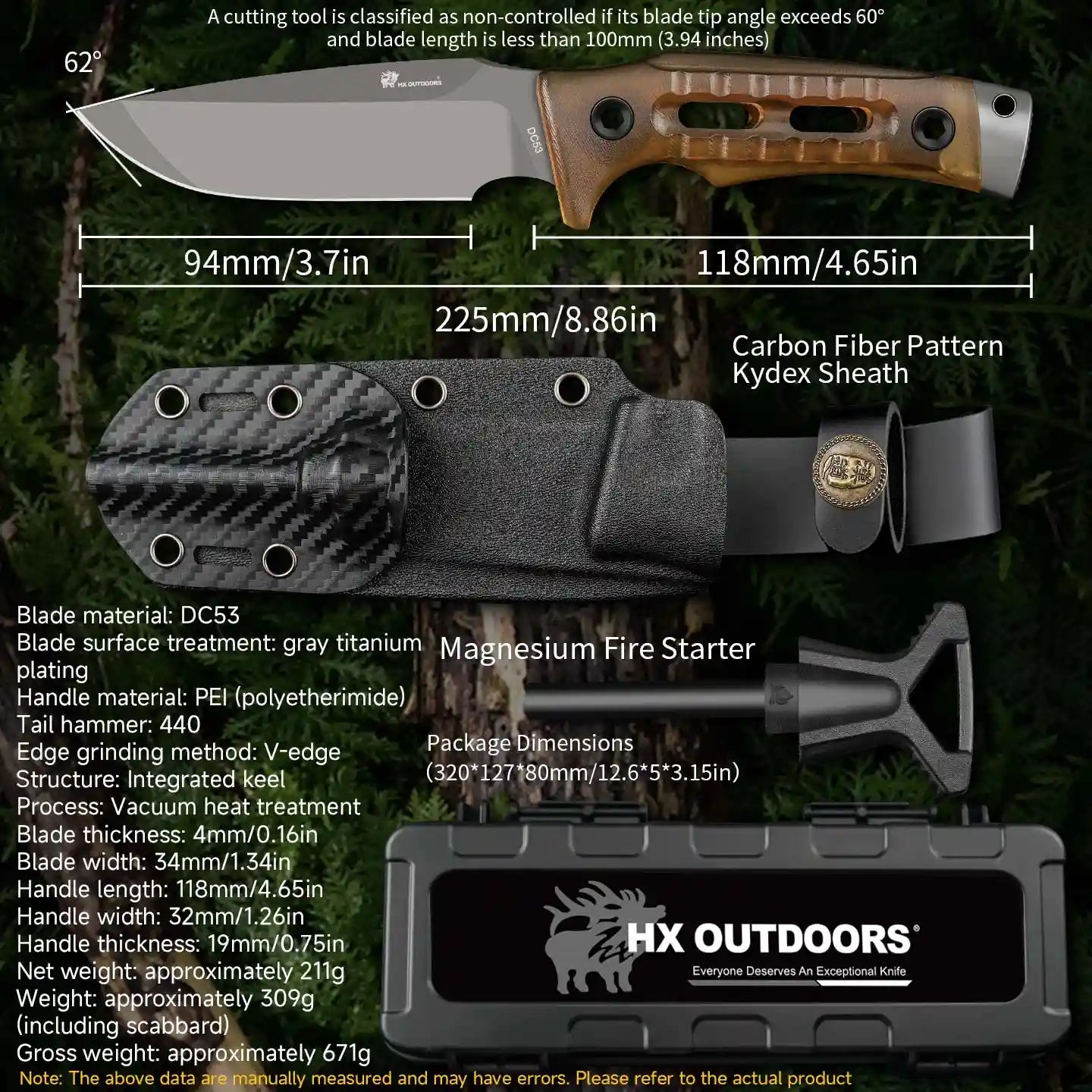 HX OUTDOORS ROCK APEX PEI Edition | Fixed Blade | 3.7" Gray Titanium Coating DC53 Blade | PEI Handle | TD-18P