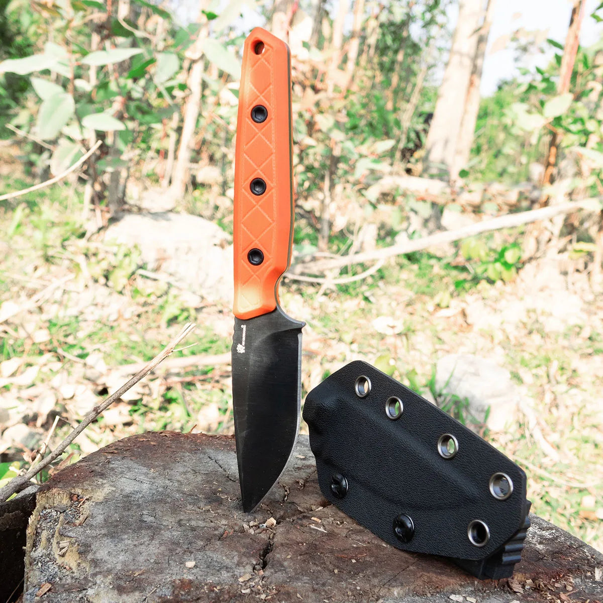 The handle is crafted from high-visibility orange G10 composite material, featuring a fine, secure texture that ensures all-weather grip while significantly enhancing visibility in outdoor environments. Its full-tang, integral construction guarantees strength and reliability, perfectly blending lightweight portability with rugged durability. Whether for everyday carry or outdoor exploration, this knife combines ultimate performance with distinctive style, making it an unforgettable piece of gear.
