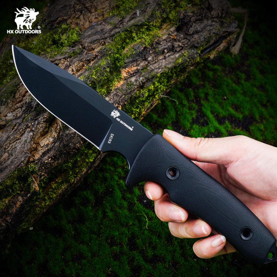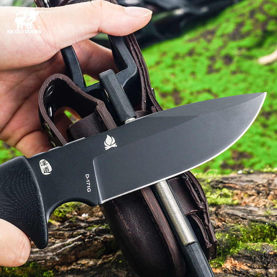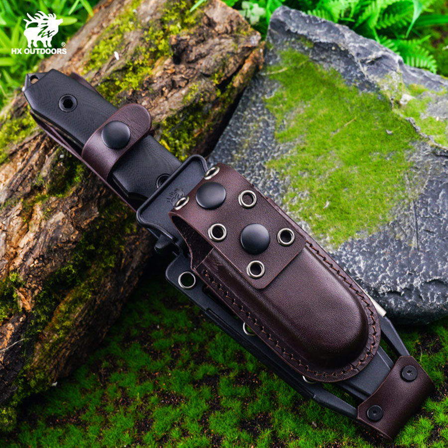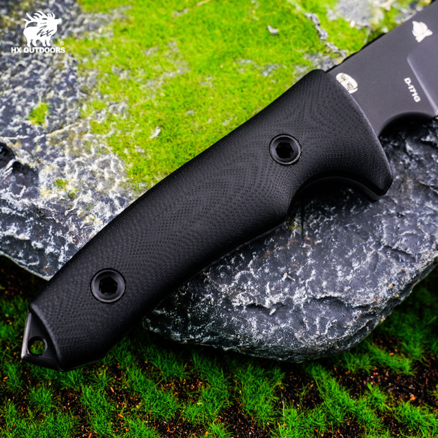 This is a G10-handled survival fixed-blade knife designed for explorers, engineered to thrive in demanding outdoor environments. The blade is forged from high-strength specialty tool steel, offering exceptional impact resistance and wear durability to withstand extreme conditions. The handle is crafted from rugged G10 composite, providing superior grip and stability even in wet or cold conditions for secure handling.